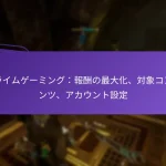 Prime Gamingは、サブスクライバーに豊富な報酬を提供し、さまざまな人気タイトルで独占的なゲーム内コンテンツや特典にアクセスできるようにします。報酬を最大限に活用するためには、定期的に利用可能なオファーを請求し、プラットフォームの機能を理解することが重要です。また、アカウント設定を効果的に管理することで、全体的なゲーム体験を向上させ、一般的な落とし穴を避けることができます。 Prime Gamingで報酬を最大化するにはどうすればよいですか? Prime Gamingで報酬を最大化するには、利用可能な報酬を定期的に請求し、特典を理解し、一般的なミスを避けることに集中してください。プラットフォームに積極的に関与し、その機能を活用することで、ゲーム体験を向上させ、貴重なゲーム内アイテムを獲得できます。 Prime Gaming報酬の特典を理解する Prime Gamingは、無料のゲーム内コンテンツ、独占アイテム、月ごとのルートなど、さまざまな報酬を提供します。これらの報酬は、ゲームプレイを向上させ、非プライム会員には利用できないユニークな体験を提供します。 さらに、Prime Gamingのメンバーは、特定のストリームを視聴することで報酬を獲得できるTwitch Dropsにアクセスできます。このTwitchとの統合により、ライブストリーミングコンテンツを楽しむゲーマーにとってシームレスな体験が生まれます。 全体として、Prime Gaming報酬の特典は、ゲームライブラリを大幅に向上させ、新しいゲームやコンテンツを探索する機会を提供します。 報酬を効果的に請求するための戦略 報酬を効果的に請求するためには、Prime Gamingのウェブサイトやアプリを定期的にチェックする習慣をつけましょう。新しい報酬は毎月追加されることが多く、最新情報を把握することで貴重なアイテムを逃さないようにできます。 ゲームアカウントをPrime Gamingアカウントにリンクして、報酬にシームレスにアクセスできるようにします。 新しい報酬がリリースされる際のリマインダーを設定し、特に期間限定オファーに注意を払います。 Prime Gamingカタログを探索して、利用可能なすべての報酬とその有効期限を確認します。 これらの戦略に従うことで、Prime Gamingを通じて利用可能な報酬を最大化できるようになります。 Twitch Dropsを活用するためのヒント Twitch Dropsは、お気に入りのストリームを楽しみながら報酬を獲得する素晴らしい方法です。この機能を活用するには、TwitchアカウントをPrime Gamingアカウントにリンクさせてください。 Dropsを提供するストリームに参加し、ゲームやイベントによって異なる資格要件に注意を払います。多くの場合、一定の時間視聴するだけで報酬を獲得できます。 これらのストリーム中にコミュニティと関わることで、体験を向上させ、今後のDropイベントについての情報を得るチャンスを増やすことができます。 報酬を請求する際に避けるべき一般的なミス 一般的なミスの一つは、ゲームアカウントをPrime Gamingアカウントにリンクしないことです。これにより、報酬を受け取れなくなる可能性があります。常にアカウントが正しく接続されていることを確認してください。 有効期限前に報酬を請求しないこと。 特定の報酬に対する要件、例えば特定の時間数を視聴することを見落とすこと。 新しい報酬を定期的にチェックしないことにより、機会を逃すこと。 これらの落とし穴を避けることで、Prime Gamingの報酬を最大限に活用できます。 報酬の追跡と管理 報酬を効果的に追跡し管理するには、定期的にPrime Gamingアカウントを確認してください。これにより、請求した報酬とまだ利用可能な報酬を確認できます。 Prime Gamingが提供する追跡機能を活用し、新しい報酬の通知やアイテム請求のリマインダーを利用しましょう。チェックリストを作成することで、整理整頓にも役立ちます。 最後に、ゲームニュースやコミュニティフォーラムをフォローして、新しい報酬やイベントの最新情報を得ることを検討してください。これにより、最新のオファーについて常に情報を得ることができます。 Prime Gaming報酬の対象となるコンテンツは何ですか? Prime Gaming報酬は、さまざまなゲームやプロモーションで利用可能で、サブスクライバーは独占的なゲーム内コンテンツや特典にアクセスできます。対象となるコンテンツには、一般的に人気タイトルやプライム会員のゲーム体験を向上させる期間限定オファーが含まれます。 現在の対象ゲームとプロモーションのリスト 現在、Prime Gamingでは「Fall Guys」、「League of […]